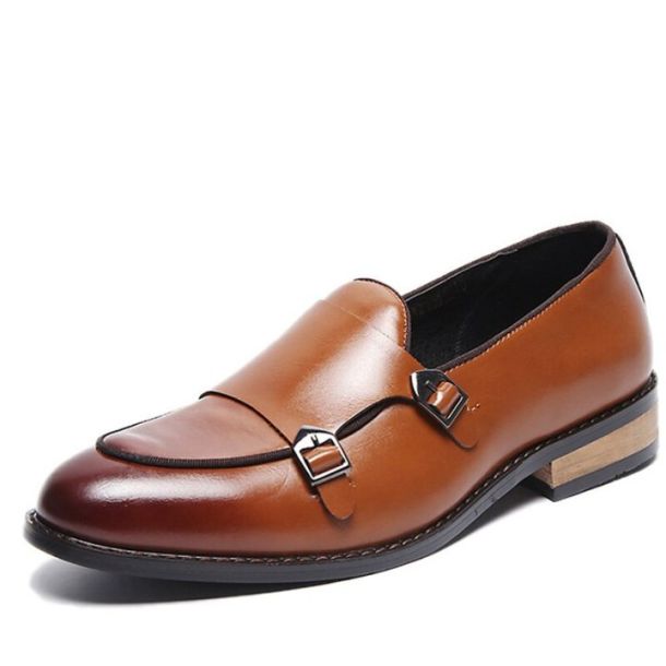 Double Buckle Leather Loafers